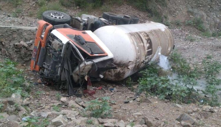 تعز | وفاة سائق اثر انقلاب قاطرة ومخاوف من انفجارها في أي لحظة نتيجة تسريب الغاز