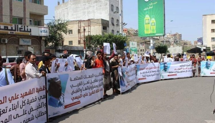 نشطاء ساحل تعز ينفذون وقفة احتجاحية المطالبة بقتلة الحيسي