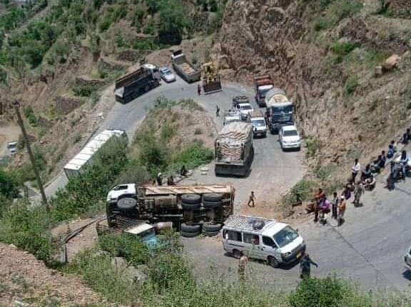وافادت مصادر محلية بان شاحنة تحمل بضائع تجارية ،انقلبت في احد الاروان في نقيل هيجة العبد ،الامر الذي تسبب بانقطاع الخط لساعات .