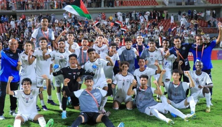 حضرت الأعلام والهتافات لفلسطين وغزة بقوة في احتفالات المنتخب والجمهور اليمني بالفوز ببطولة غرب آسيا للناشئين تحت سن الـ17 عاما.