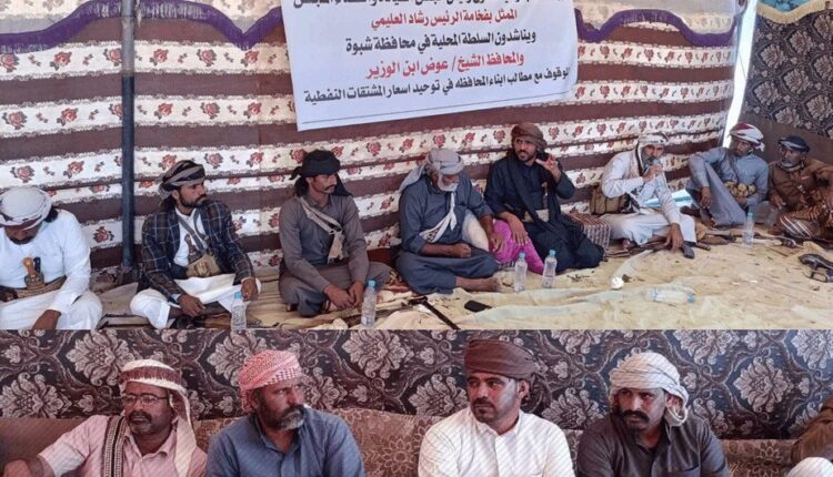 ابناء شبوة يواصلون اعتصامهم للمطالبة بخفض اسعار المشتقات النفظية