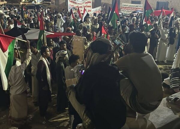 ووفقا لوسائل إعلام محلية فإن: ” مظاهرة حاشدة خرجت بعد صلاة المغرب بمدينة الغيضة عاصمة المحافظة للتضامن مع الشعب الفلسطيني والمطالبة بوقف جرائم الاحتلال الإسرائيلي في قطاع غزة.