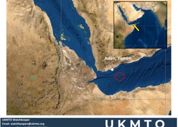 وقالت هيئة عمليات التجارة البحرية البريطانية في تعميم ” تلقينا تقريرا عن حادثة وقعت على بعد 70 ميلا بحريا جنوب شرق عدن في اليمن”.