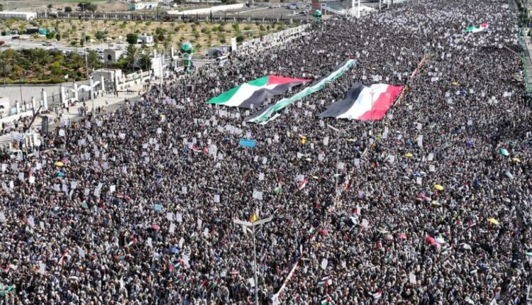 المسيرات الحاشدة التي تأتي في ظل تواصل الخروج الأسبوعي كل جمعة، حملت شعار “انتصارا لغزة.. ضرباتنا متصاعدة”، حملت الولايات المتحدة الأمريكية مسؤولية جرائم الإبادة الجماعية التي يرتكبها الاحتلال في غزة.