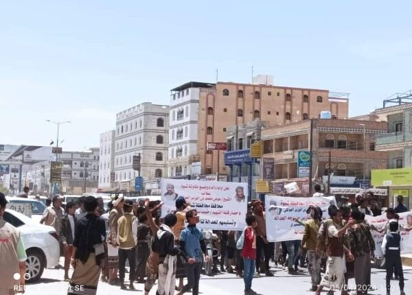مظاهرة للمطالبة بالقبض على عناصر بالانتقالي قتلوا شاباً في شبوة