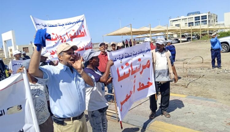 موظفو المنطقة الحرة يطالبون بصرف مرتباتهم المتوقفة في عدن