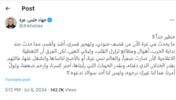وكاتب الناشط، جهاد حلس، في تدوينه له على منصة “إكس”، خطير جدا، ما يحدث في غزة الآن من قصف جنوني، وتهجير قسري، أشد وأقسى مما حدث منذ بداية الحرب، أهوال وفظائع تزلزل القلب، وتبكي العين”.