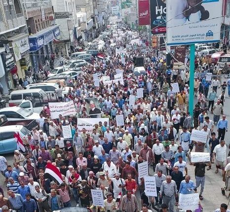 وجاءت المسيرة بعد أياما من بعث المندوب الاممي رسالة إلى سلطة الرئاسي تحثه على التراجع عن قراراته الأخيرة لما فيها من ضرر للاقتصاد اليمني ودفعا باتجاه إعادة الحرب بين الطرفين.