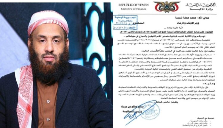 كشفت وثائق رسمية، الأربعاء، عن فساد مهول واختلاس للمال العام من قبل وزير الأوقاف بحكومة الرئاسي، محمد عيضة شبيبة، يصل إلى أكثر من (337 ) مليون ريال سعودي من حسابات الحج .