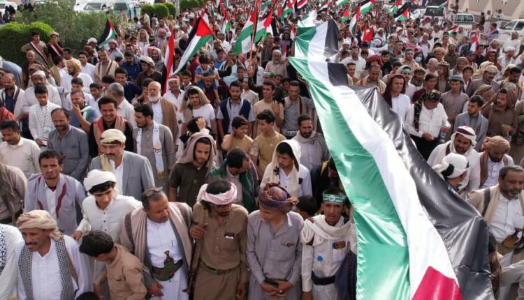 “شهداء صلاة الفجر”.. مسيرة حاشدة في مأرب تضامنا مع غزة