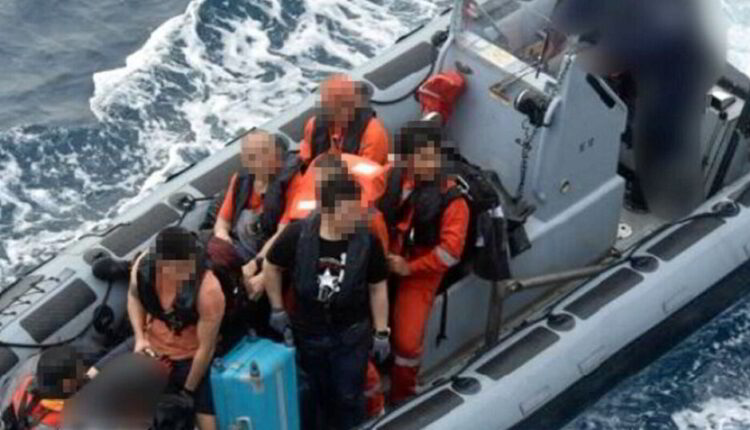 تداولت وسائل إعلامية، الخميس، صورا تظهر طاقم السفينة “سونيون” التي استهدفتها قوات صنعاء-الحوثيين، أثناء عملية اجلائهم من السفينة.