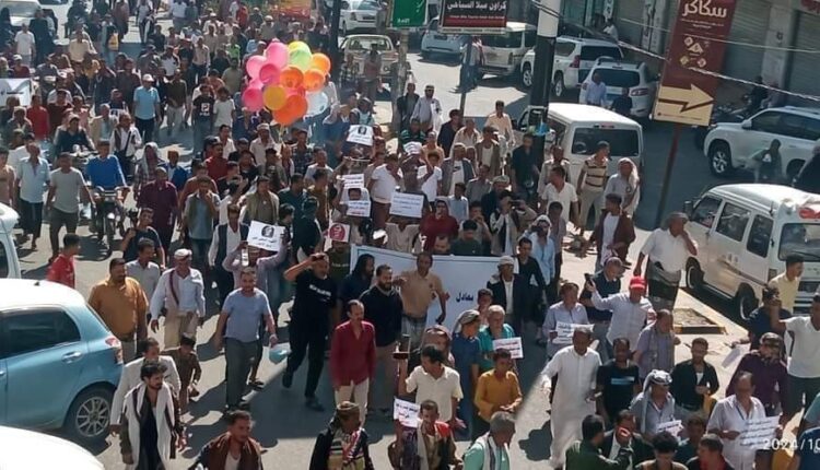 حملت الرئاسي والتحالف مسؤولية انهيار العملة| مظاهرة شعبية غاضبة في تعز