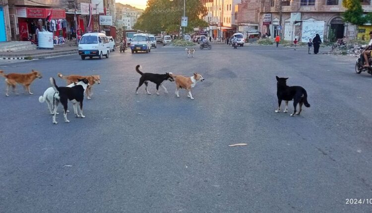 وأشارت إلى أن الكلاب الضالة تغزوا شوارع مدينة تعز في ظل تجاهل السلطات المعنية للظاهرة وعدم قيامها بمكافحتهم.