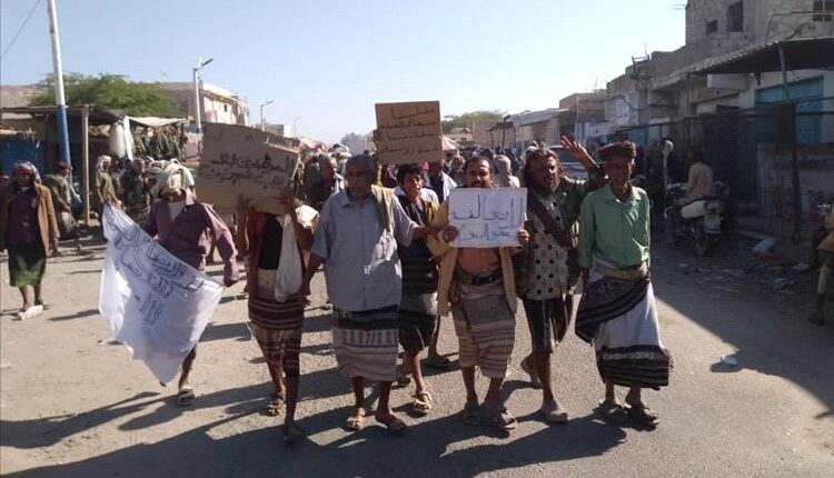 ولا زالت المظاهرات الاحتجاجية الشعبية تشهدها مديرية المحفد محافظة أبين مالم تلبية مطالبهم.
