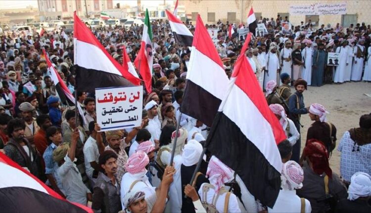 واستنكر المحتجون استمرار التدخل الإماراتي السعودي في شؤون المحافظة وسيطرتهم على مواردها الاقتصادية والاستراتيجية.