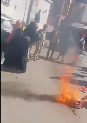تداول ناشطون على مواقع التواصل الاجتماعي مقطع فيديو يظهر قيام امرأة بحرق ملابسها امام مقر السلطة المحلية في مدينة تعز يوم السبت الماضي، تنديدا بالتهجم على منزلها من قبل مسؤول محلي وعصابته.