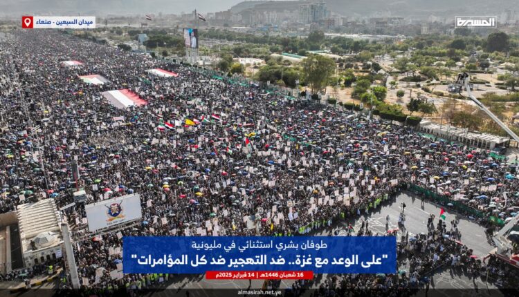 رفضا لتهجير الفلسطينيين من غزة.. مظاهرات حاشدة في صنعاء والمحافظات اليمنية
