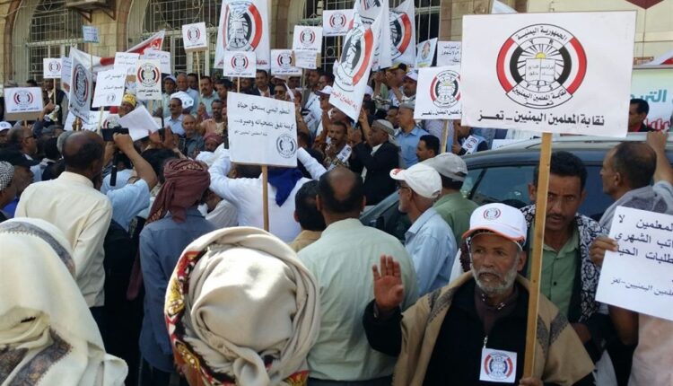 يواصل المعلمون والموظفون في مدينة تعز مظاهراتهم الاحتجاجية للشهر الثاني تواليا، تنديدا لانهيار الوضع المعيشي.
