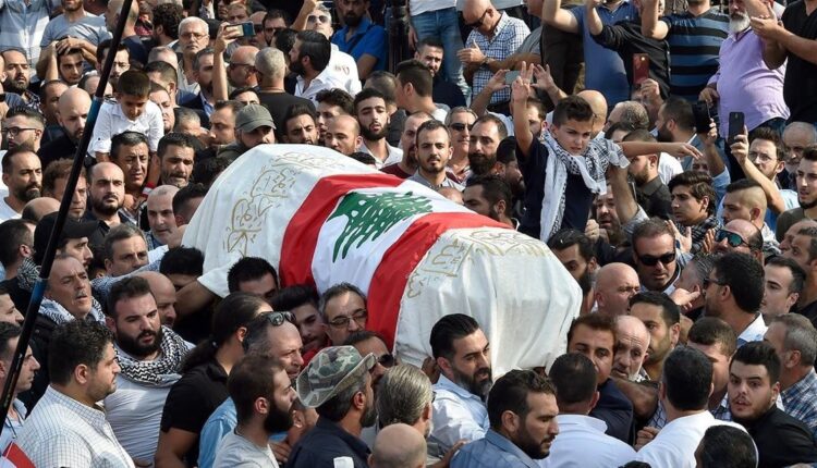 شيع اللبنانيون في بلدة عيناتا، اليوم السبت ، جثمان 35 شهيداً ارتقوا خلال العدوان الصهيوني على لبنان.