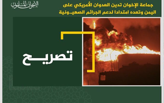أدانت جماعة الإخوان المسلمين، الأحد، العدوان الأمريكي البريطاني على اليمن، مؤكدة أنه يأتي في إطار “الدور الأمريكي الأصيل في دعم الكيان الإسرائيلي“.