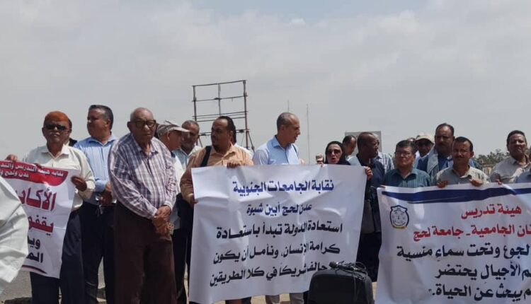 للمطالبة بحقوقهم المالية.. وقفة لأكاديمي أربع جامعات أمام مقر التحالف بعدن