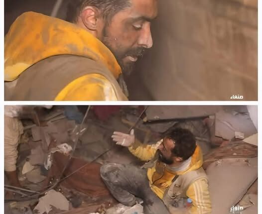 الدفاع المدني ينتشل جثمانها.. موقف مؤثر لمواطن يبحث عن زوجته تحت الركام