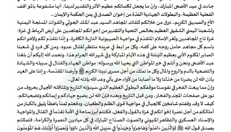 وكانت كتائب القسام قد نشرت قبل أيام، رسالة موجهة من رئيس أركان قوات صنعاء، الغماري، إلى المقاومة الفلسطينية في غزة، لتأتي هذه الرسالة كرد عليها.