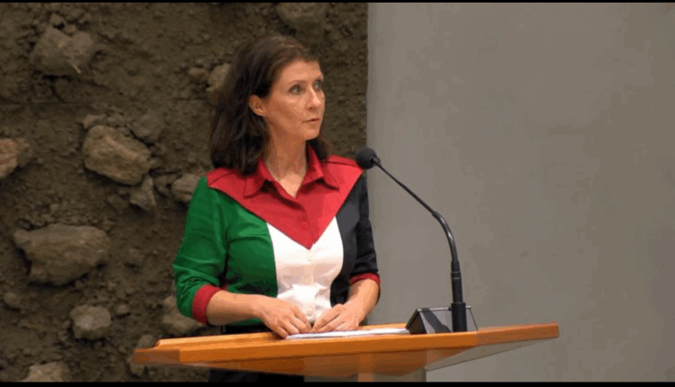 نائبة هولندية تدخل البرلمان مرتديةً فستاناً بألوان عَلَم فلسطين