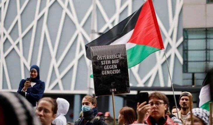 تظاهر الآلاف في العاصمة النمساوية فيينا، دعما لفلسطين وللمطالبة بفرض عقوبات على الكيان الإسرائيلي بسبب جرائم الإبادة الجماعية التي ارتكبتها في قطاع غزة.