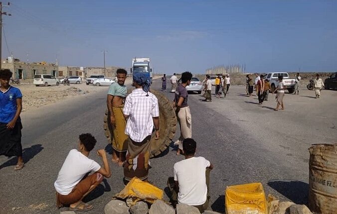 صيادون محتجون يغلقون الطريق الدولي في حضرموت