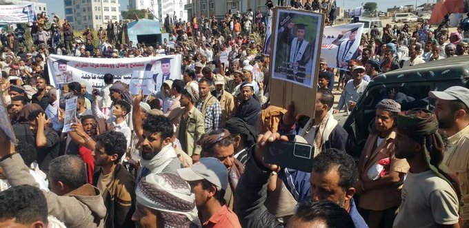 تظاهر المئات في مدينة التربة محافظة تعز، صباح اليوم الأحد، احتجاجًا على تدهور الوضع الأمني، والمطالبة بالكشف عن المتورطين في مقتل الشاب عبدالرحمن النجاشي وتقديمهم للعدالة.