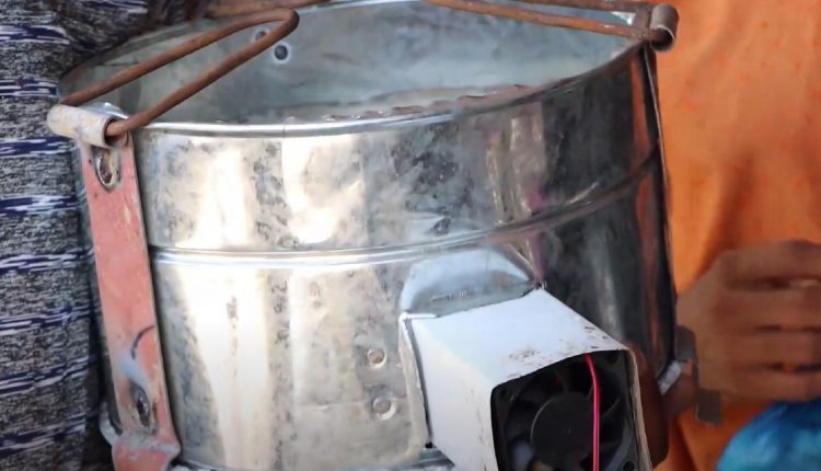 وتعمل مروحة موجودة داخل فتحة أسطوانية على توليد الهواء وإشعال النيران. ونتيجة لعدم وجود الكهرباء لدى العديد من المنازل، فإن تلك المروحة تعمل عن طريق ربطها بمنظومة الطاقة الشمسية التي تعتمد عليها معظم الأسر في محافظة تعز منذ بداية الحرب.