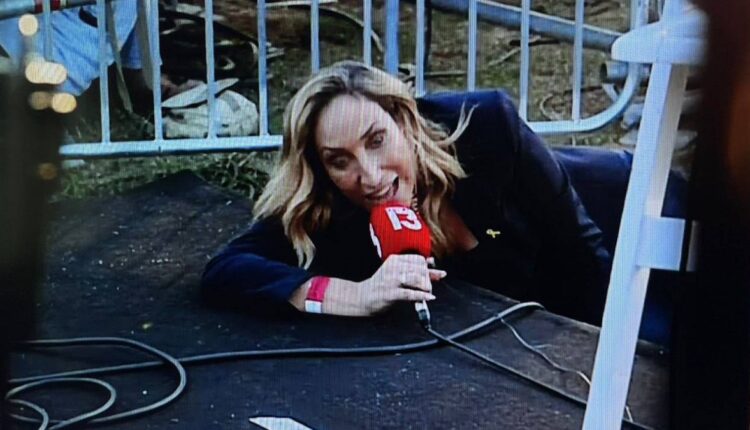 وتظهر مشاهد تداولها ناشطون على مواقع التواصل الاجتماعي مراسلة القناة 13 التابعة للاحتلال على الهواء مباشرة، وهي بحالة ذعر ومستلقية على الأرض بعد دوي صفارات الإنذار.